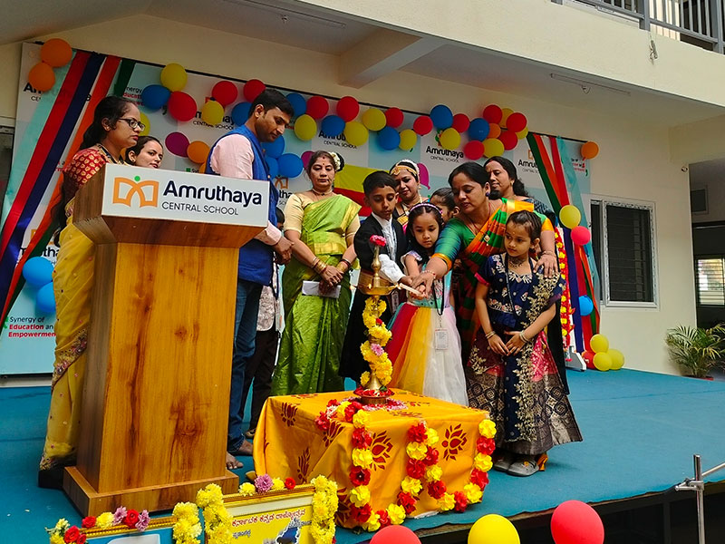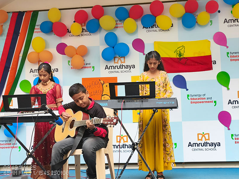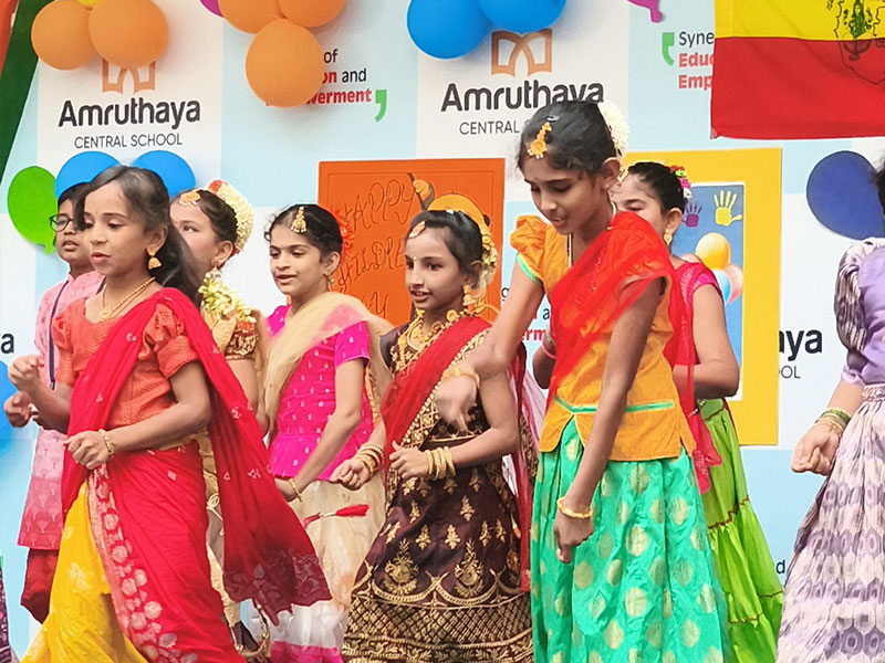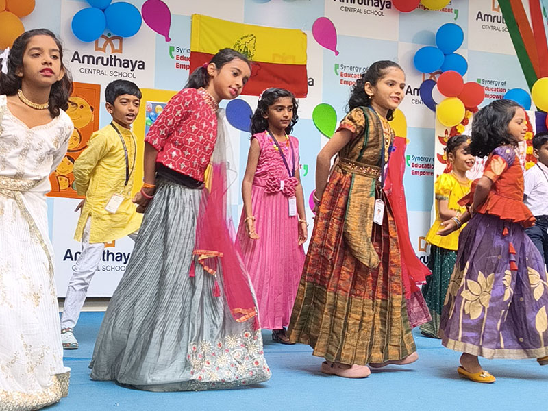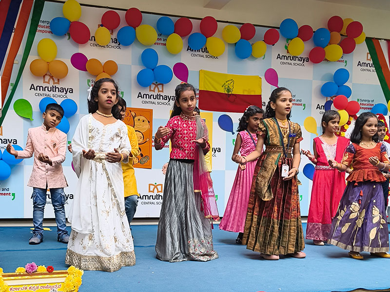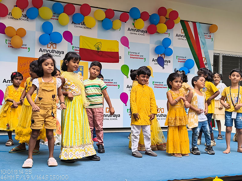 At Amruthaya Central School, we joyfully celebrated Kannada Rajyotsava and Children’s Day together, creating a vibrant atmosphere filled with culture, pride, and happiness. The event began with a heartfelt tribute to our beautiful state, Karnataka. Students presented traditional dances, songs, and speeches that highlighted the richness of Kannada language, culture, and heritage. The stage glowed with red and yellow, symbolising our state flag.