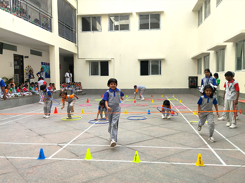 Sports day is an exhilarating celebration that brings together students, teachers, and parents to participate in various athletic events. The day begins with a vibrant opening ceremony, where students march in their respective house colors, showcasing their team spirit. Throughout the day, a variety of competitions take place, including track and field events and relays, fostering a sense of camaraderie and healthy competition among participants. The air is filled with cheers and encouragement as everyone rallies behind their teams. Additionally, there are fun activities and games for younger students, ensuring that everyone is included in the festivities. The event culminates in an awards ceremony, where medals and trophies are presented to the top performers, celebrating their hard work and dedication. Overall, sports day is not just about competition; it is a day of joy, teamwork, and school spirit that strengthens the bonds within our school community.